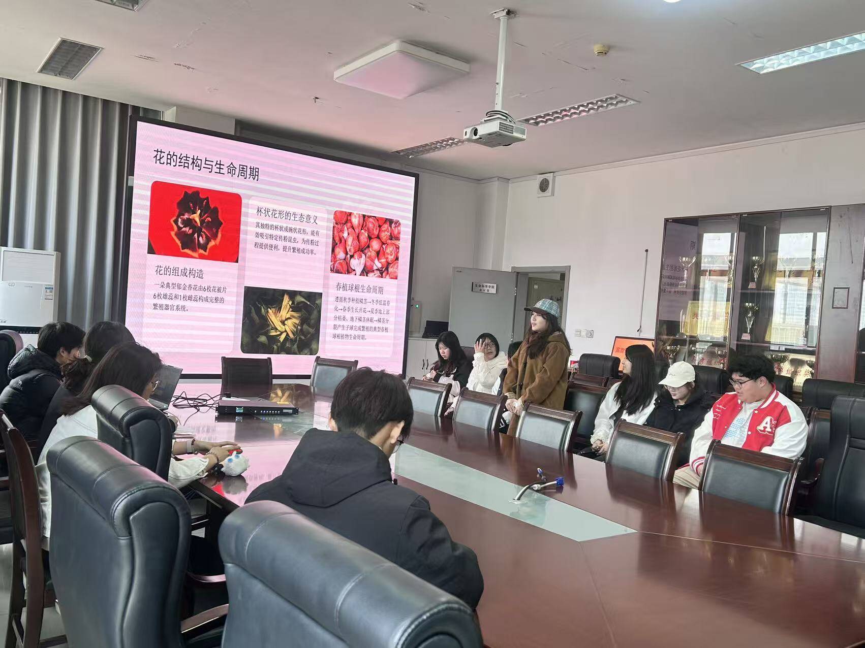 活动现场,主讲人围绕郁金香展开专业讲解,从外形特征、生长习性、生长周期到实际生活用途进行全方位科普,重点解析了郁金香杯状花形的生态意义、花的组成构造等核心知识,让同学们对这一花卉有了系统且深入的认知。分享过程中,同学们认真聆听、积极探讨,主动交流自己的思考与感悟,在思维的碰撞中收获知识、获得启发,现场学习氛围浓厚。